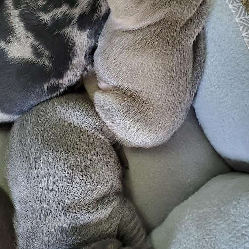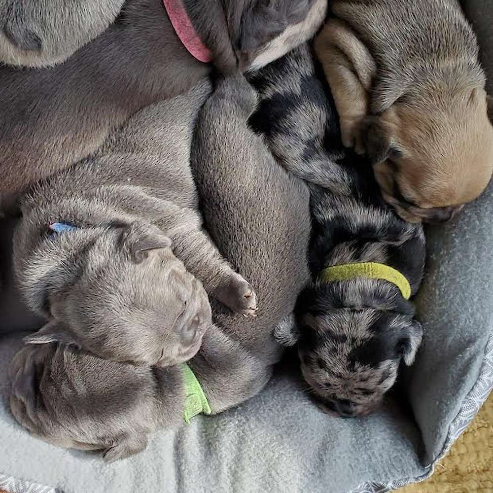 This was Mila’s first litter, and she was a terrific mother. She just turned 2 in June. She is so sweet and cannot get enough of people.